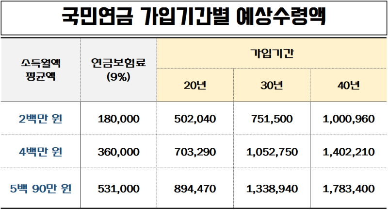 이 표를 통해 자신의 소득 수준에 맞는 예상수령액을 확인할 수 있습니다.