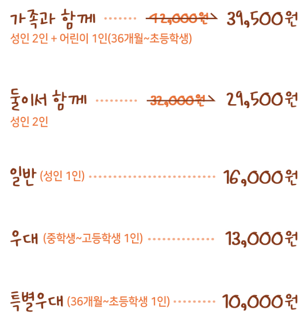 남이섬의 입장권은 정가가 ₩16,000입니다. 하지만 다양한 할인 혜택이 있어, 미리 예약하거나 특정 조건을 충족하면 더 저렴하게 입장할 수 있습니다. 예를 들어, 학생이나 노인에게는 할인된 가격인 ₩13,000에 제공되며, 어린이는 ₩10,000에 입장할 수 있습니다.