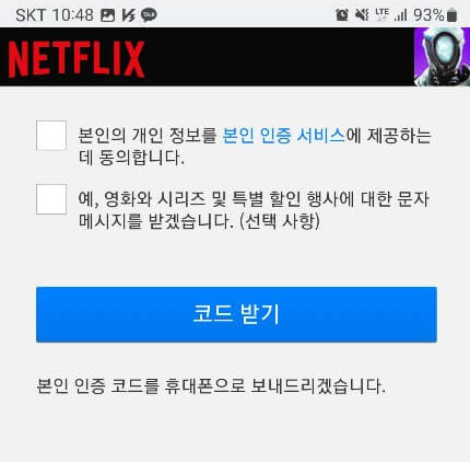 - 코드 받기 : 입력한 휴대폰 번호로 인증 코드를 받게 됩니다.