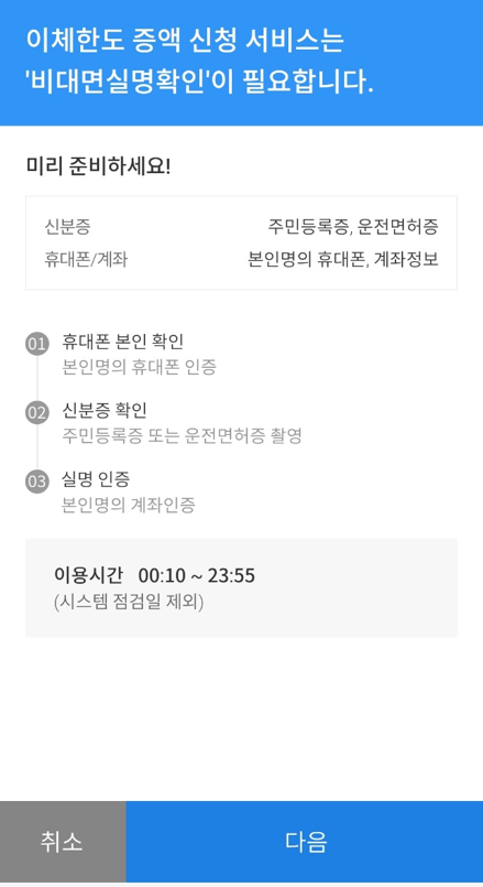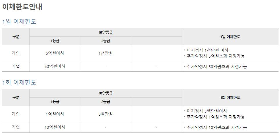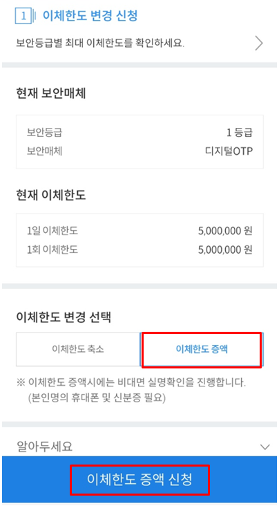 이체한도 증액 시 유의사항
