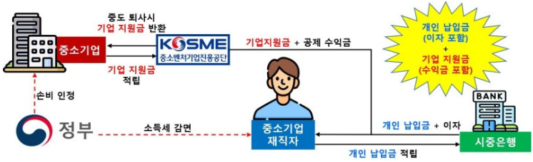 - 근로자는 하나은행 또는 기업은행에 '중소기업 재직자 우대 저축' 계좌를 개설해야 합니다.